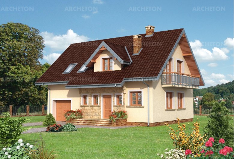 Одноэтажный дом, с эксплуатационным чердаком, с гаражом