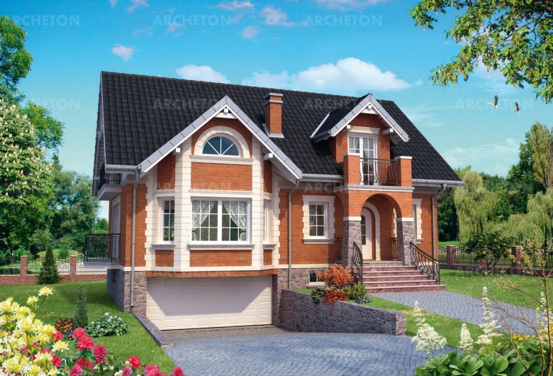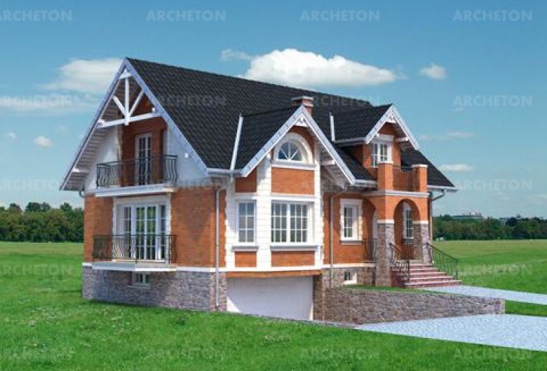 Одноэтажный дом, с эксплуатационным чердаком, с гаражом, с гаражом для 2 автомобилей