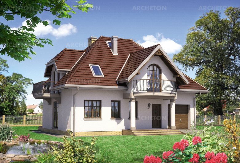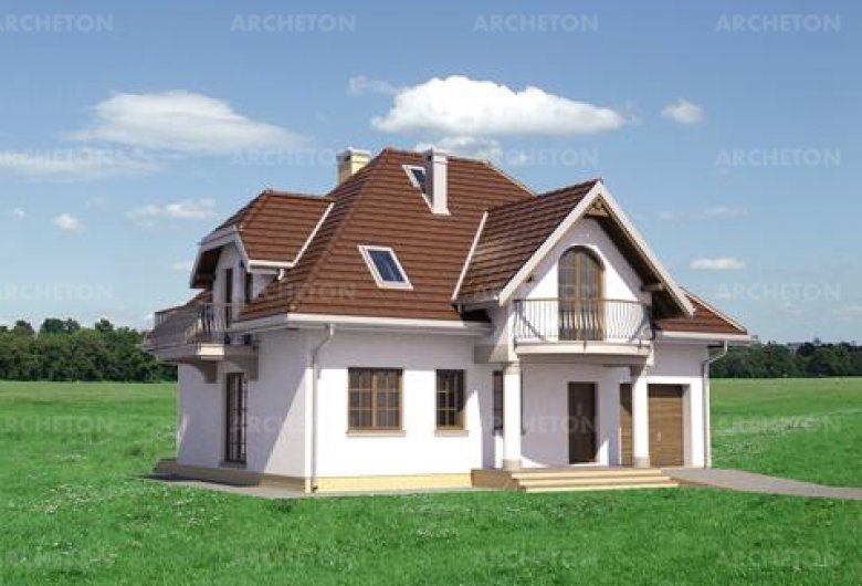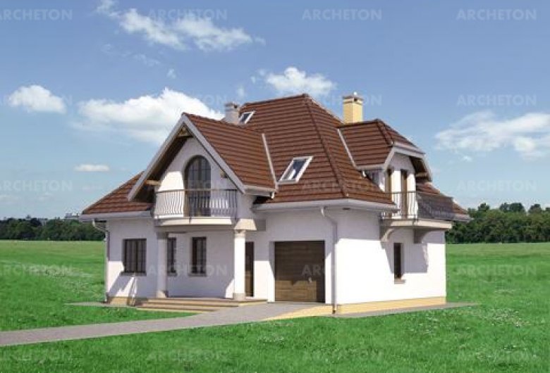 Одноэтажный дом, с мансардным этажом, с гаражом.