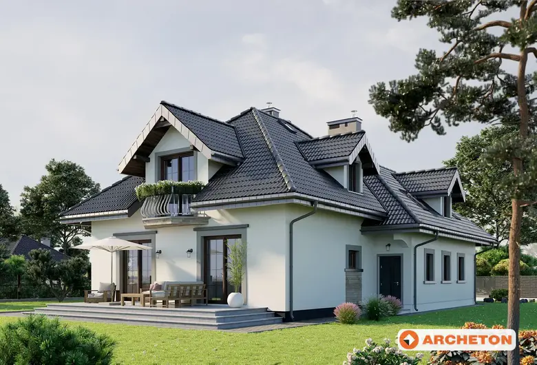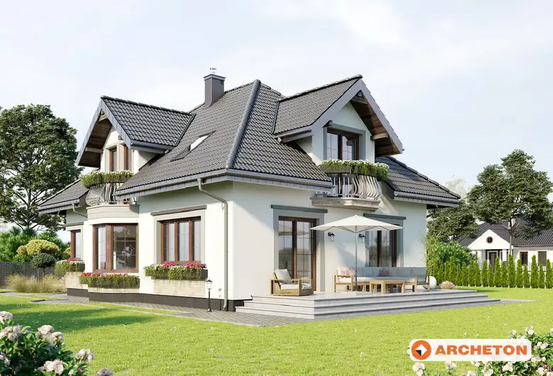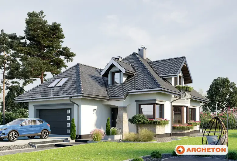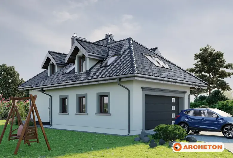 Одноэтажный дом, с мансардным этажом, с гаражом для 2 аитомобилей.