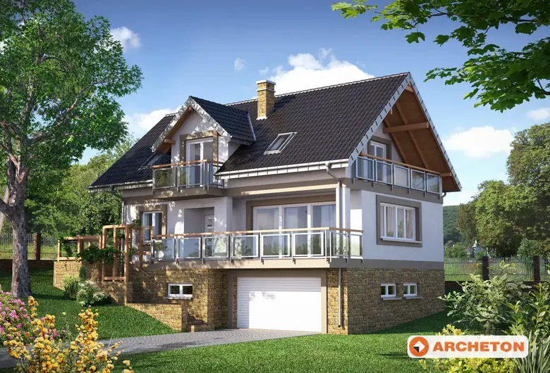Одноэтажный дом, с мансардным этажом, с гаражом для 2 автомобилей, с подвалом