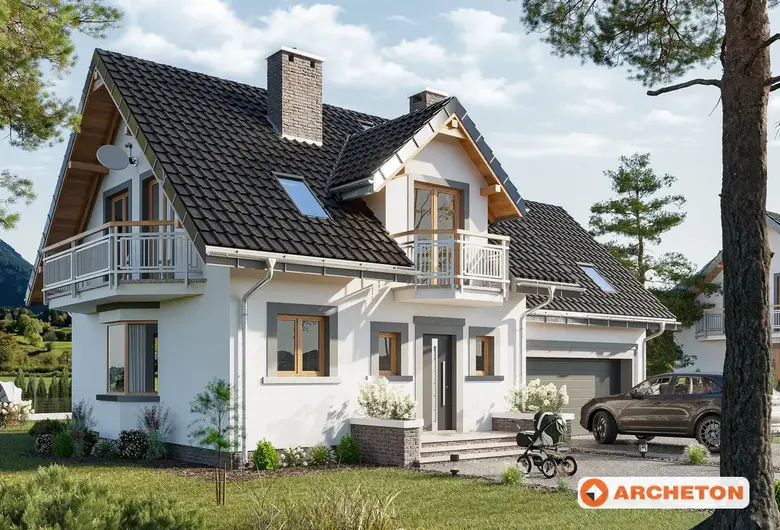 Одноэтажный дом, с мансардным этажом, с гаражом для 2 автомобилей