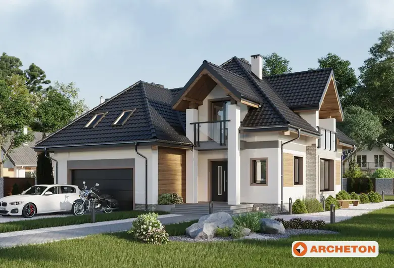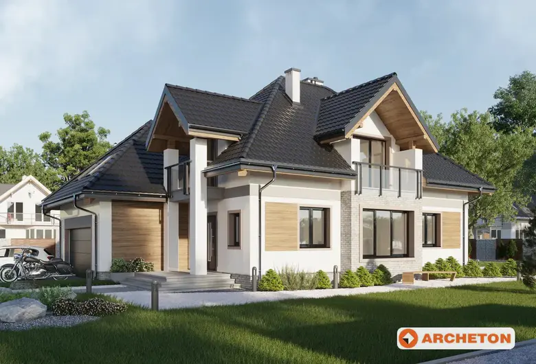 Одноэтажный дом, с мансардным этажом, с гаражом для 2 автомобилей