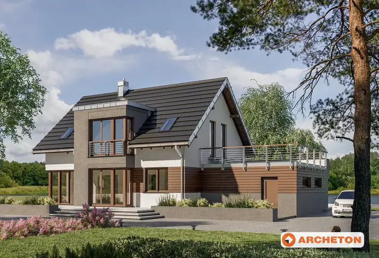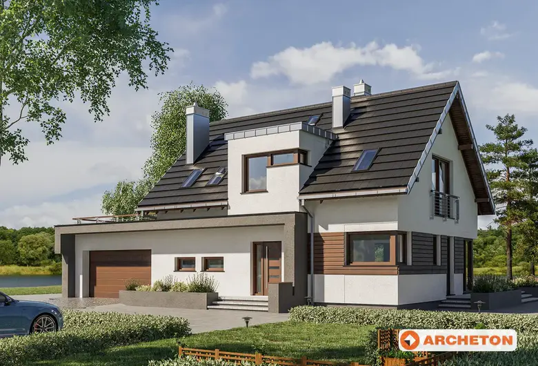 Одноэтажный дом, с мансардным этажом, с гаражом для 2 автомобилей