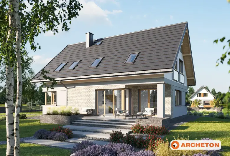 Одноэтажный дом, с мансардным этажом, с гаражом для 2 автомобилей
