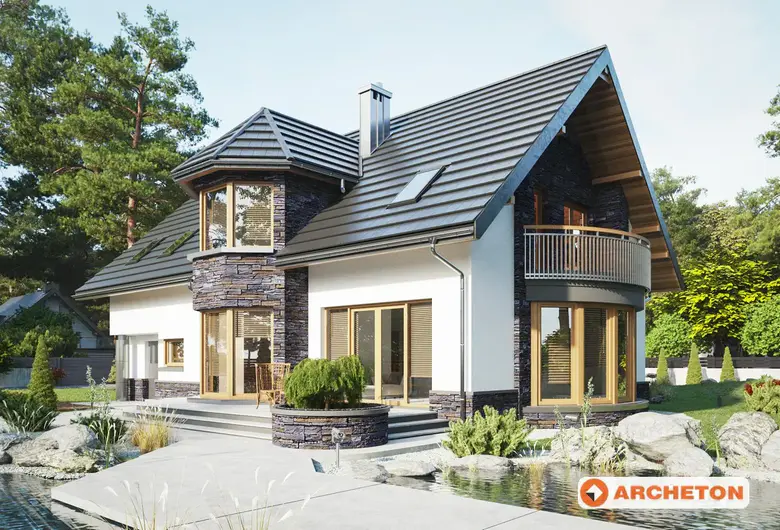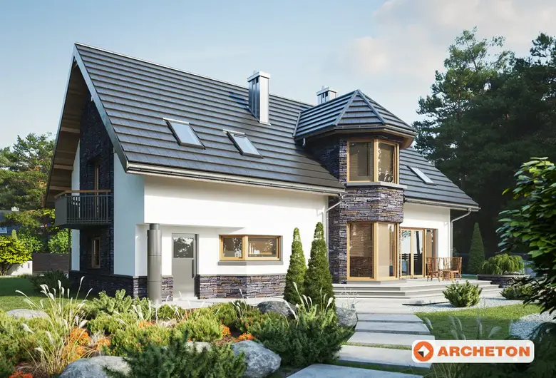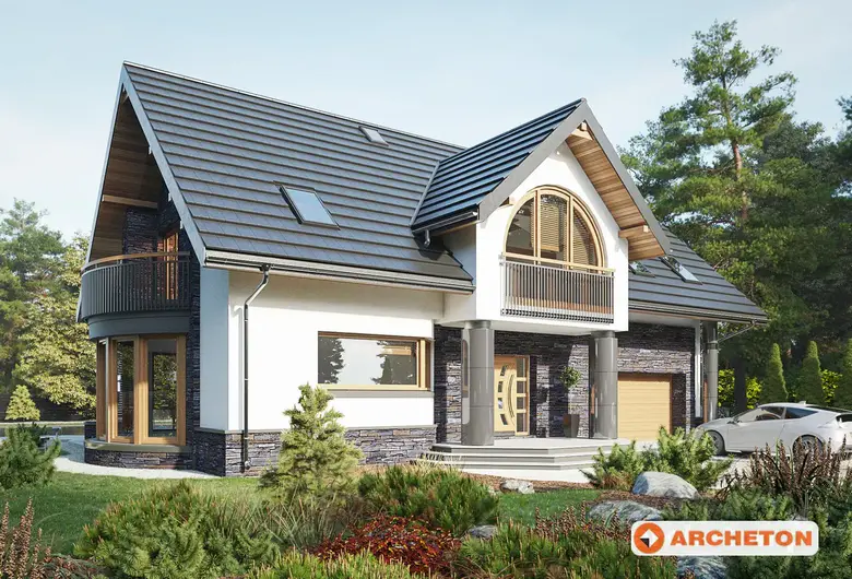 Одноэтажный дом, с мансардным этажом, с гаражом для 2 автомобилей