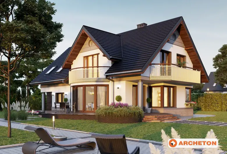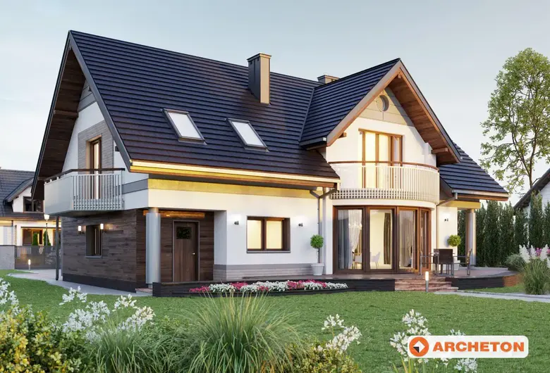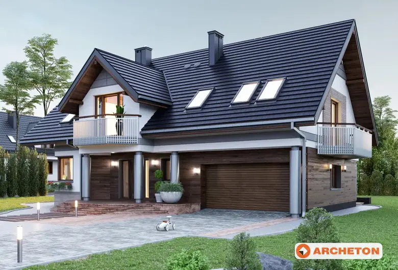 Одноэтажный дом, с мансардным этажом, с гаражом для 2 автомобилей