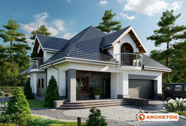 Одноэтажный дом, с мансардным этажом, с гаражом на 2 автомобиля