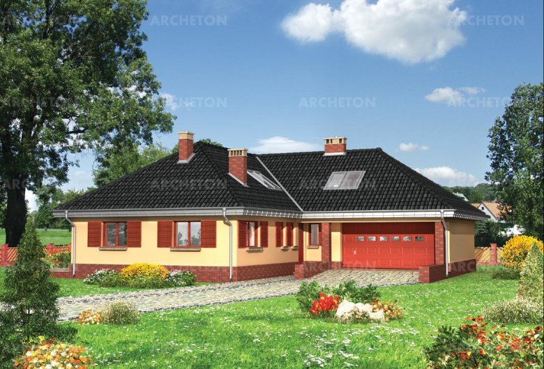 Одноэтажный дом с гаражом на 2 автомобиля с возможностью адаптации чердака на втором этапе строительства