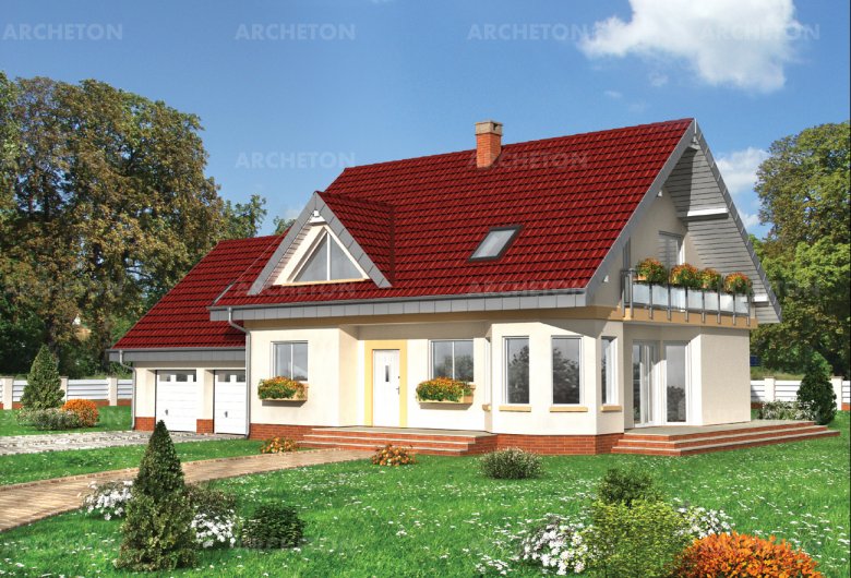 Одноэтажный дом, с эксплуатационным чердаком, без выстроенного подвала, с гаражом для 2 автомобилей