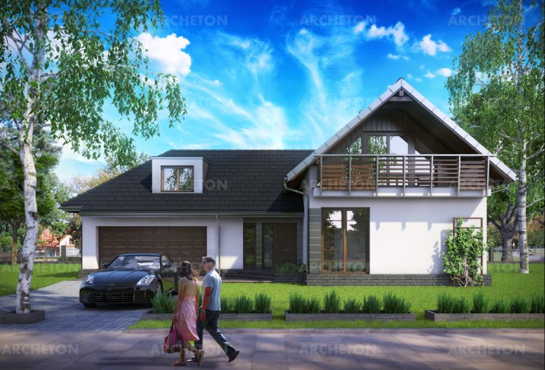 Одноэтажный дом, с эксплуатационным чердаком, с гаражом для двух автомобилей