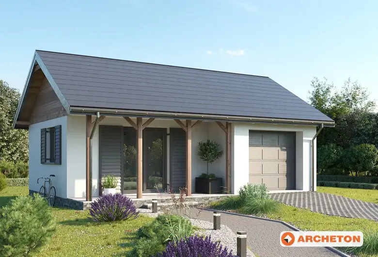 Одноэтажное здание с гаражом для 1 автомобиля и жилищной частью