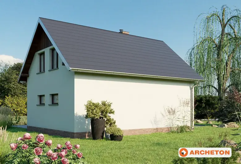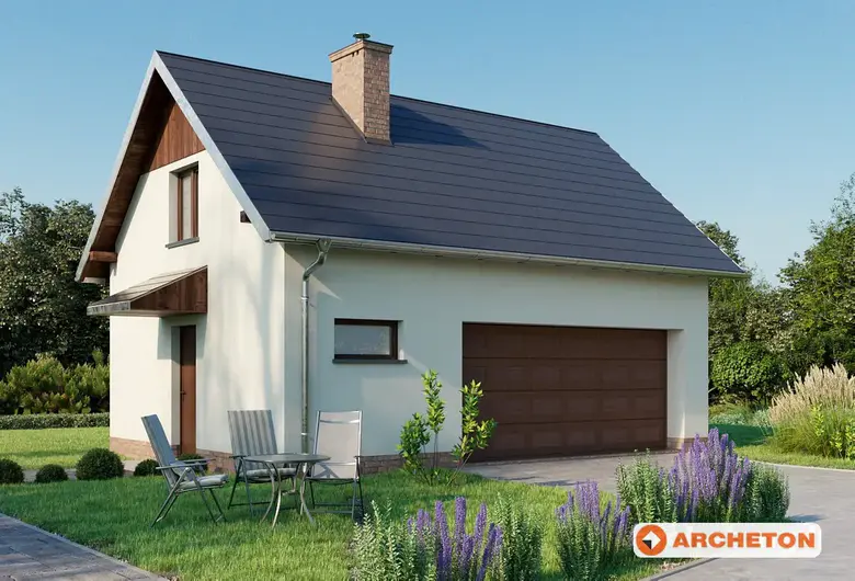 Одноэтажное здание с гаражом для 2 автомобилей и жилищной частью на чердаке